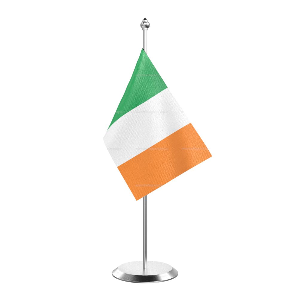 - Single Ireland Table Flag With Stainless Steel Base and Pole with 15″ pole