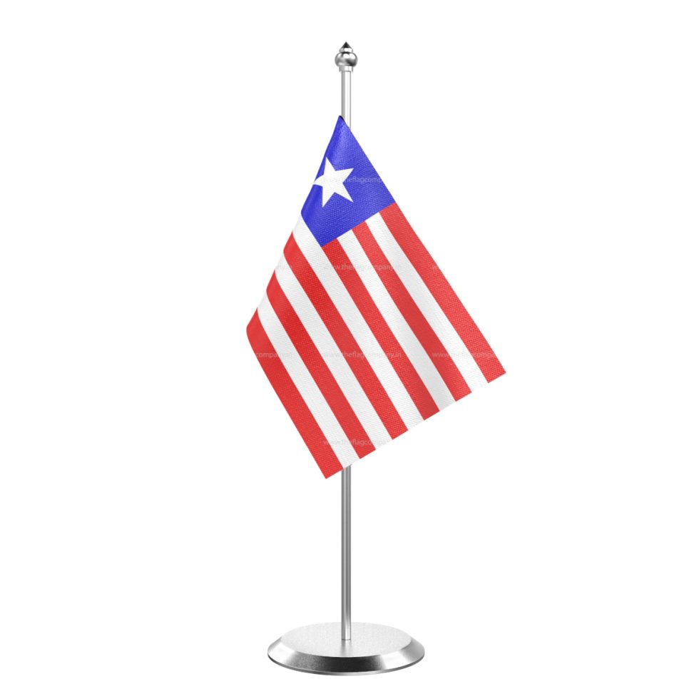 • Single Liberia Table Flag With Stainless Steel Base and Pole with 15″ pole