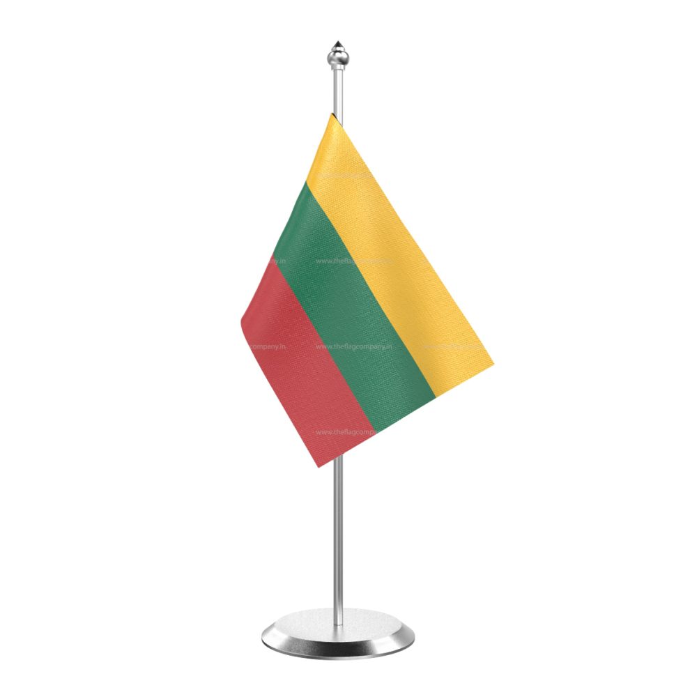 - Single Lithuania Table Flag With Stainless Steel Base and Pole with 15″ pole