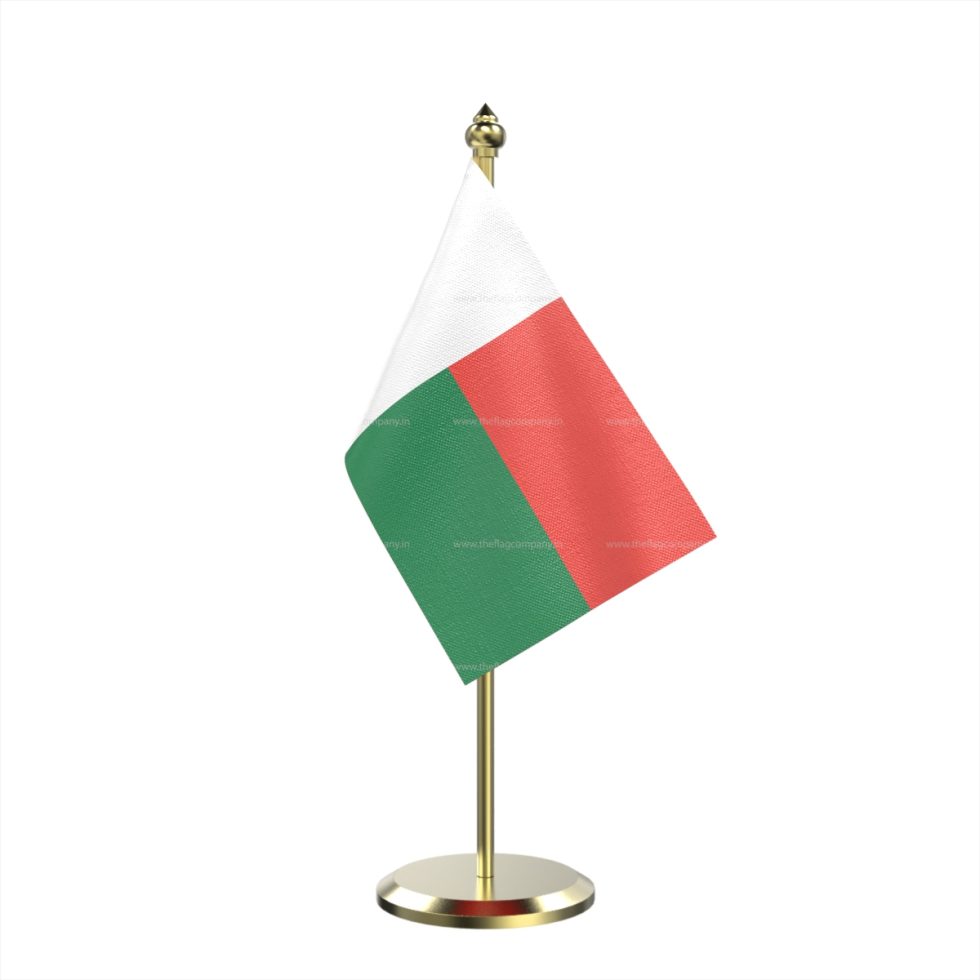 • Single Madagascar Table Flag With Brass Base and Brass Pole