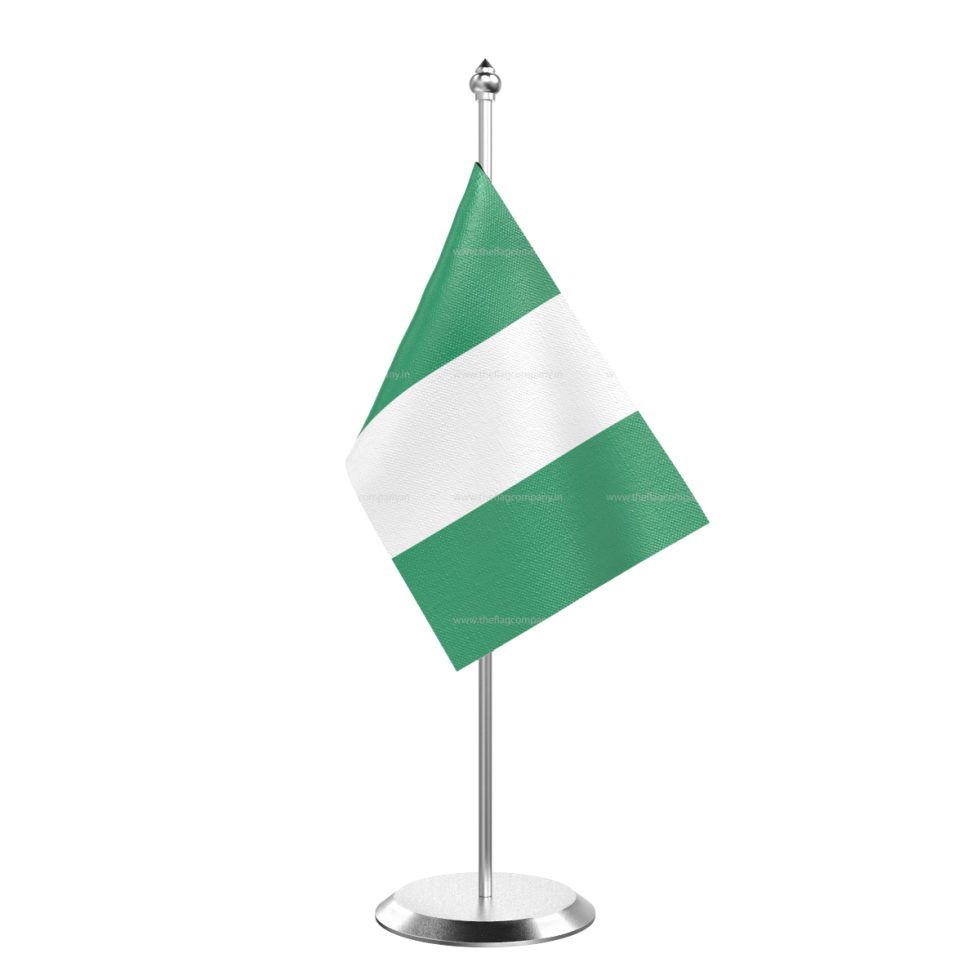 • Single Nigeria Table Flag With Stainless Steel Base and Pole with 15″ pole