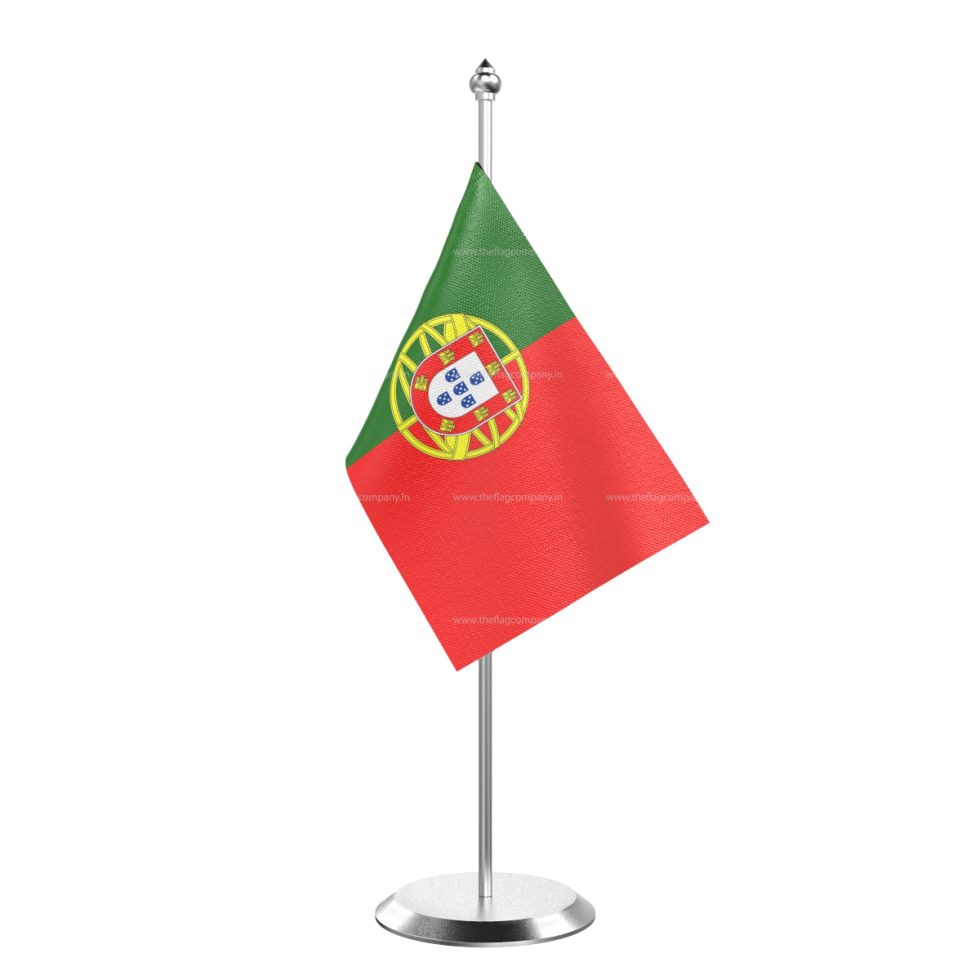 Portugal Single Table Flag with Stainless Steel Base and Pole with 15″ pole
