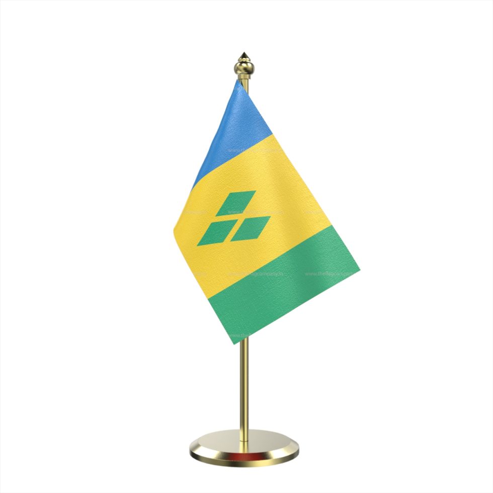 - Single Saint Vincent and the Grenadines Table Flag With Brass Base and Brass Pole