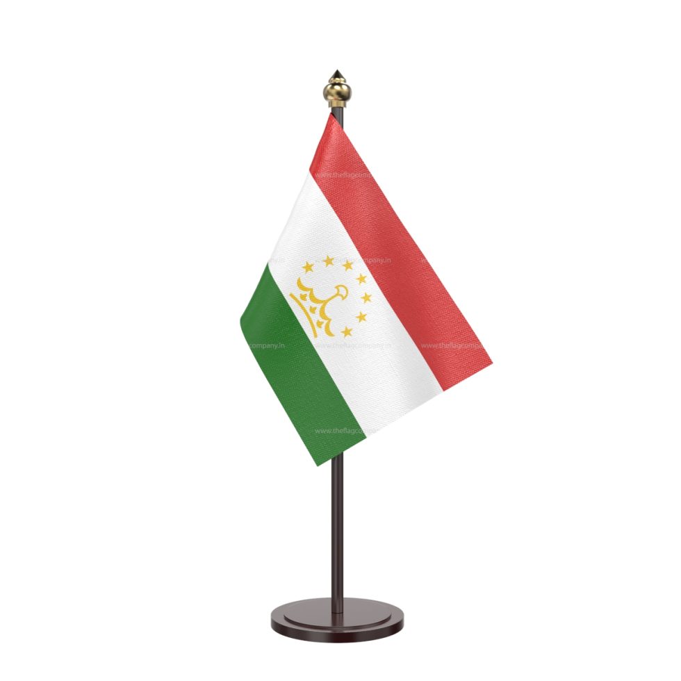- Single Tajikistan Table Flag With Black Plastic Base and Plastic Pole