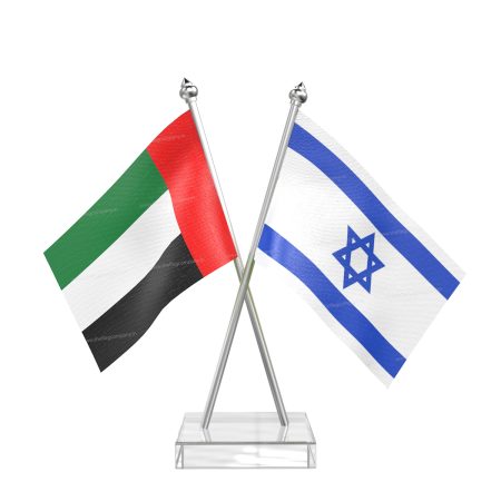 Israel Y Shaped Table Desk Miniature Flag with Stainless Steel Base and Pole