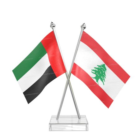 Lebanon Y Shaped Table Desk Miniature Flag with Stainless Steel Base and Pole