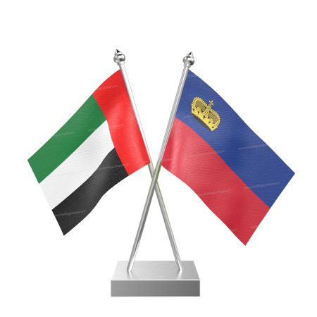Liechtenstein Table Flag With Stainless Steel Base and Pole