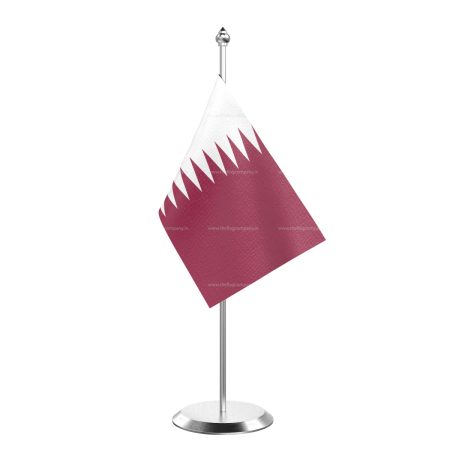 - Single Qatar Table Flag With Stainless Steel Base and Pole with 15″ pole